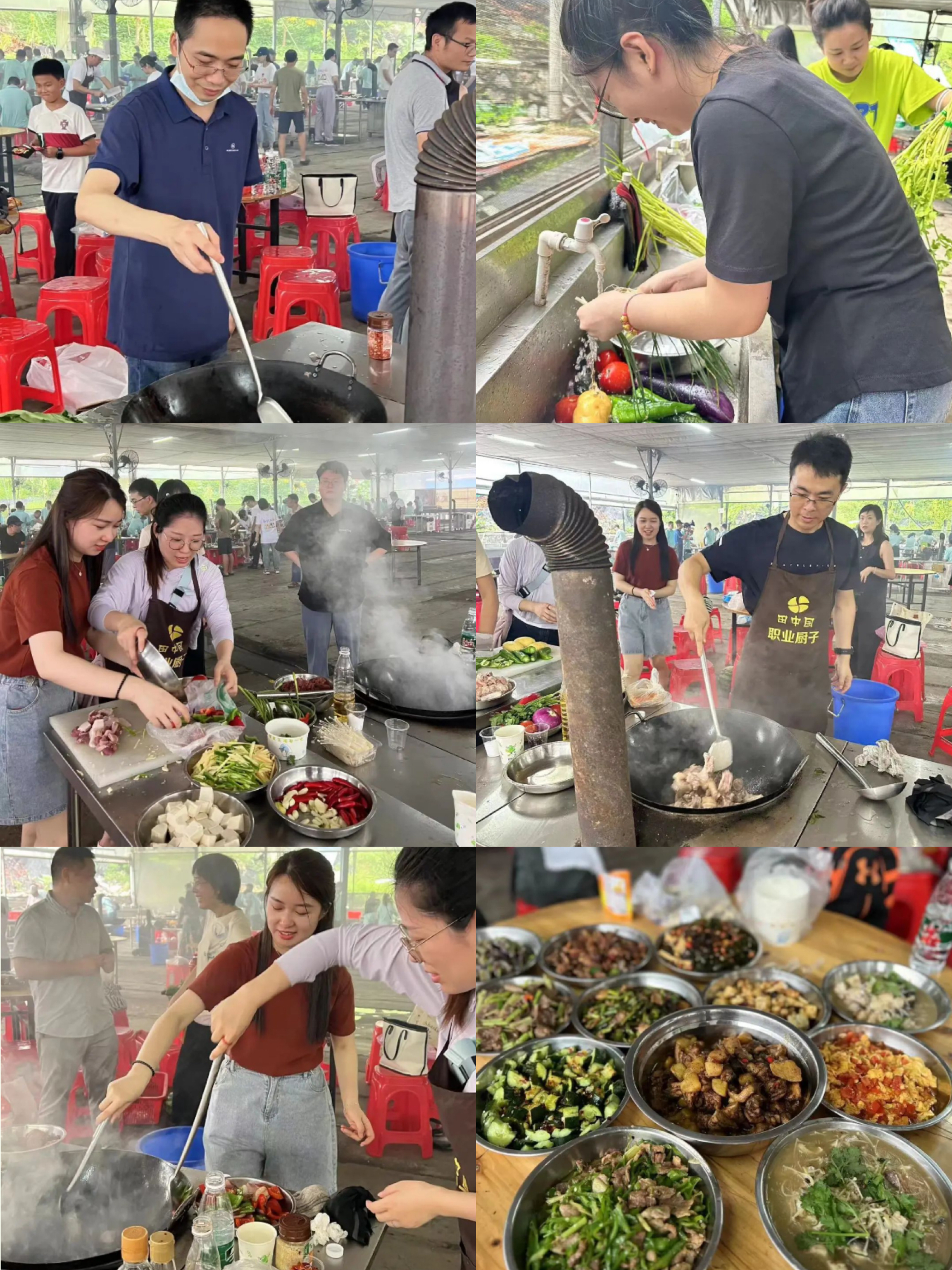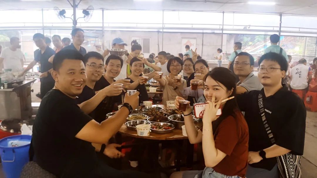 上午十點(diǎn),深九家人們來(lái)到深圳鳳凰山的團(tuán)建基地,大家開(kāi)始擼起袖子一起加油干,忙得不亦樂(lè)乎,有條不紊地領(lǐng)食材、生火、洗菜、掌勺、包粽子……不一會(huì)兒,炊煙裊裊、香味四溢,一道道美味佳肴紛紛呈上餐桌。