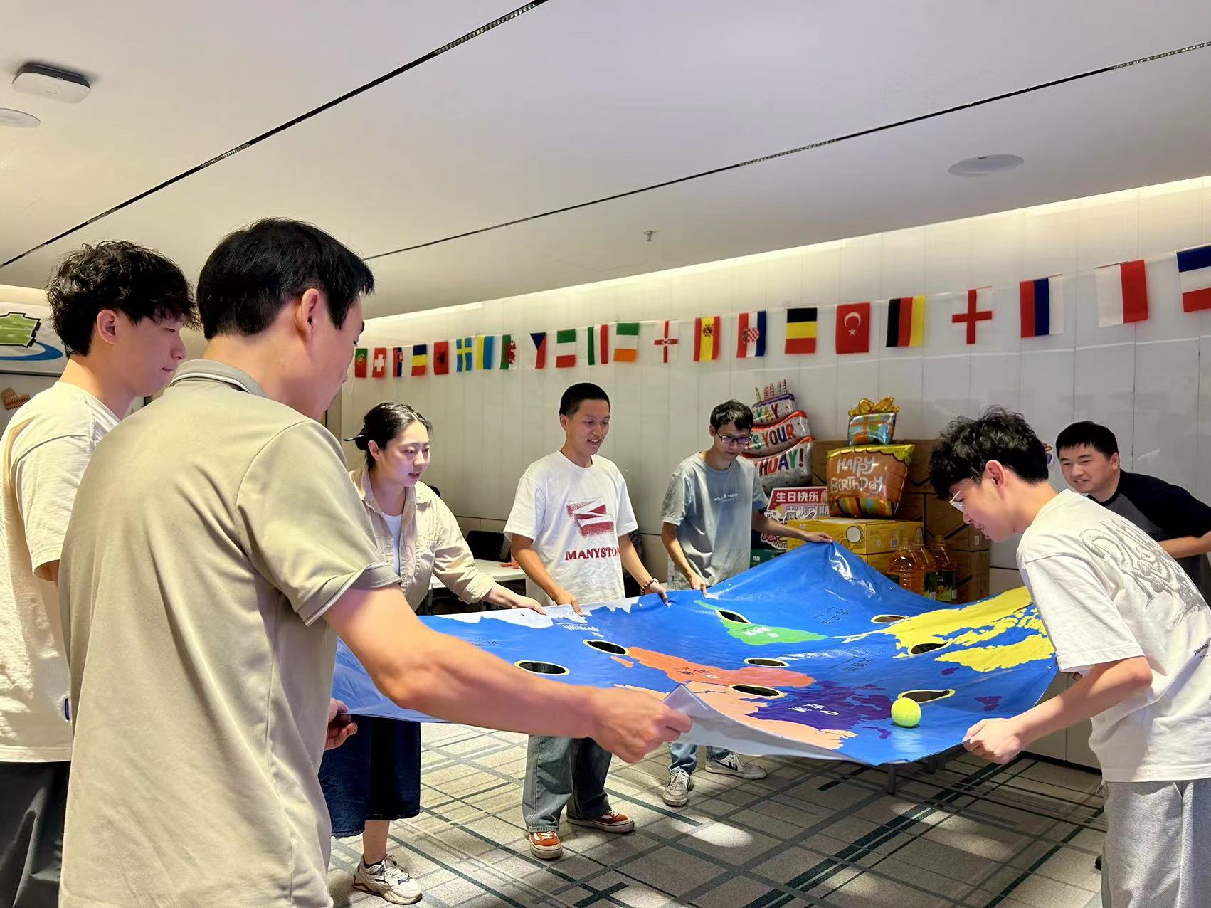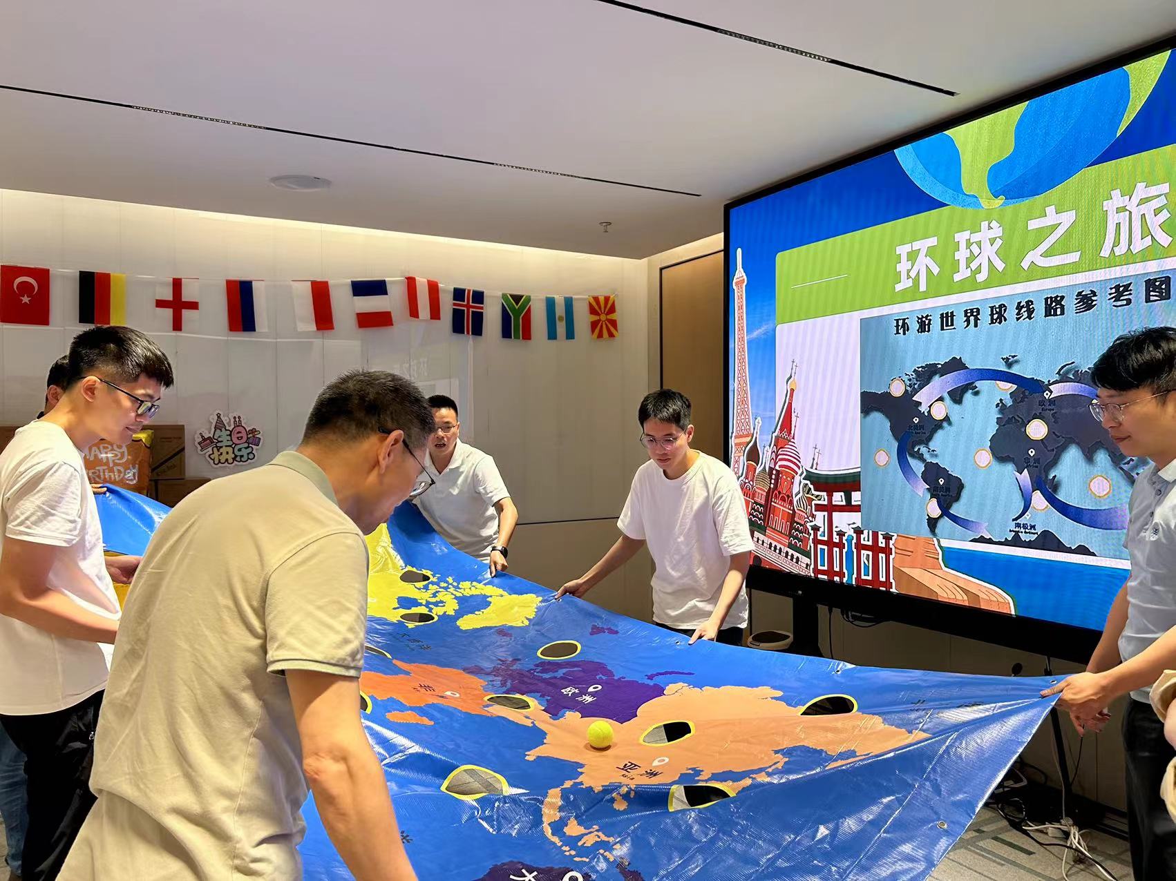 本次生日會(huì)的游戲環(huán)節(jié),為了貼近“環(huán)球”的主題,展現(xiàn)公司作為集團(tuán)國(guó)際貿(mào)易橋頭堡的風(fēng)采,壽星們分為“擁抱世界”、“放眼全球”兩個(gè)隊(duì)伍,開(kāi)始了兩輪精彩對(duì)決!