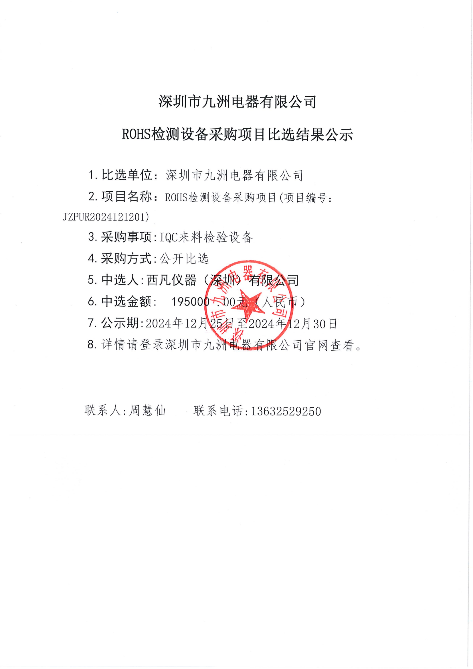 ROHS檢測設備采購比選結(jié)果公示
