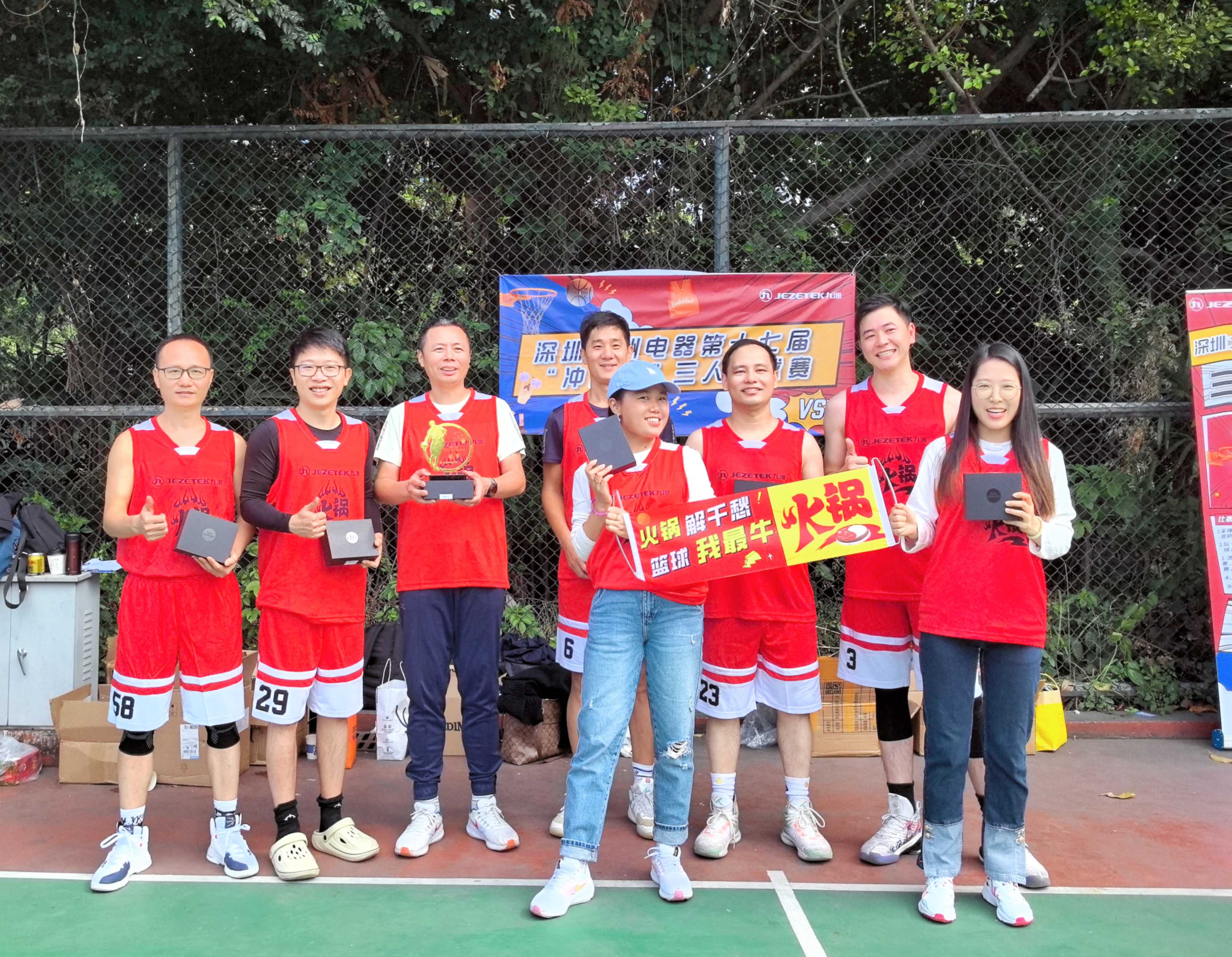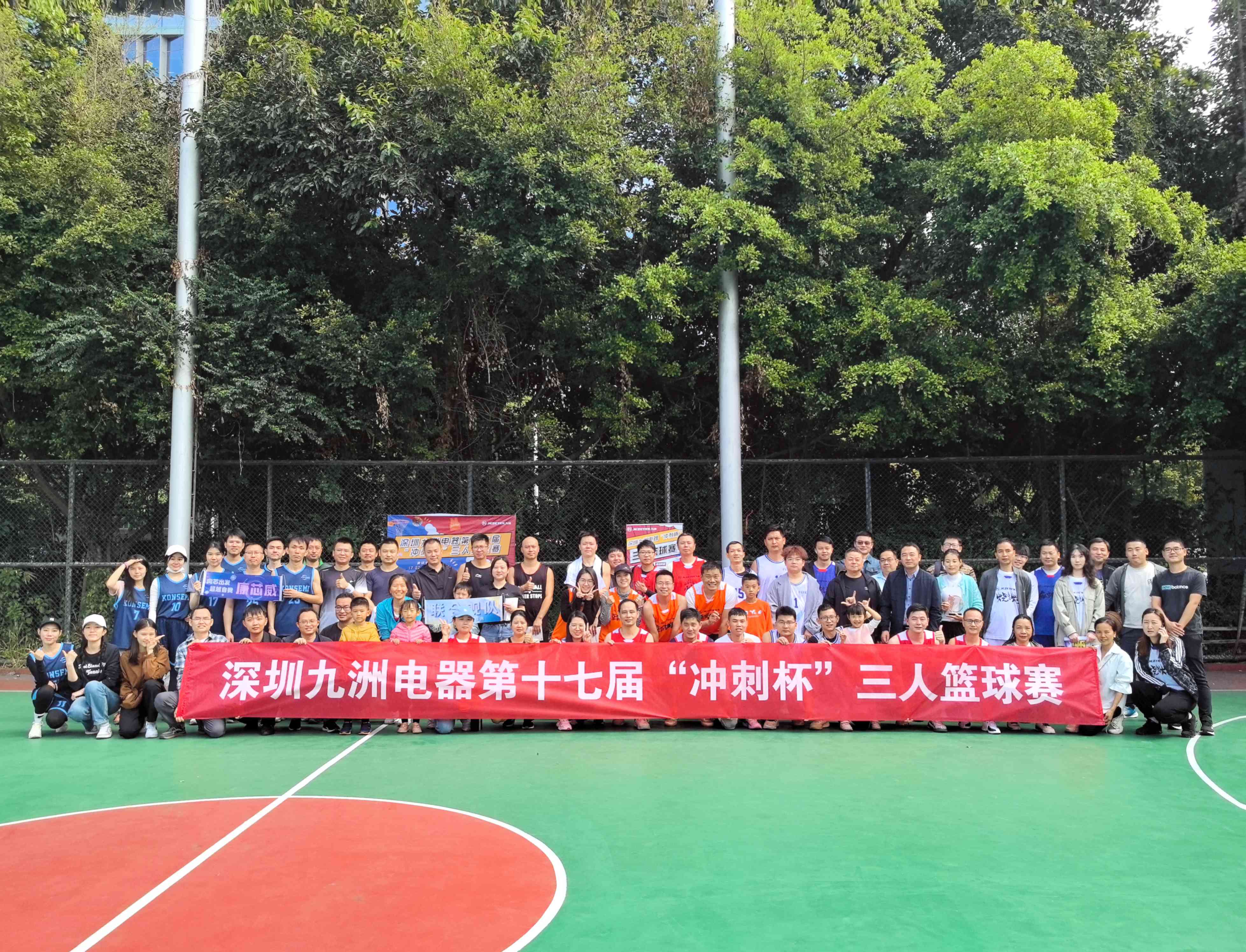 為鼓舞員工沖刺年度經(jīng)營目標(biāo)的士氣,營造積極向上、團(tuán)結(jié)拼搏的公司氛圍,豐富員工文體生活,深圳市九洲電器有限公司組織開展第十七屆“沖刺杯”三人籃球賽。本次比賽還邀請了深圳地區(qū)的兄弟公司和合作伙伴,共組成了10支隊伍,近100名人員參與比賽。