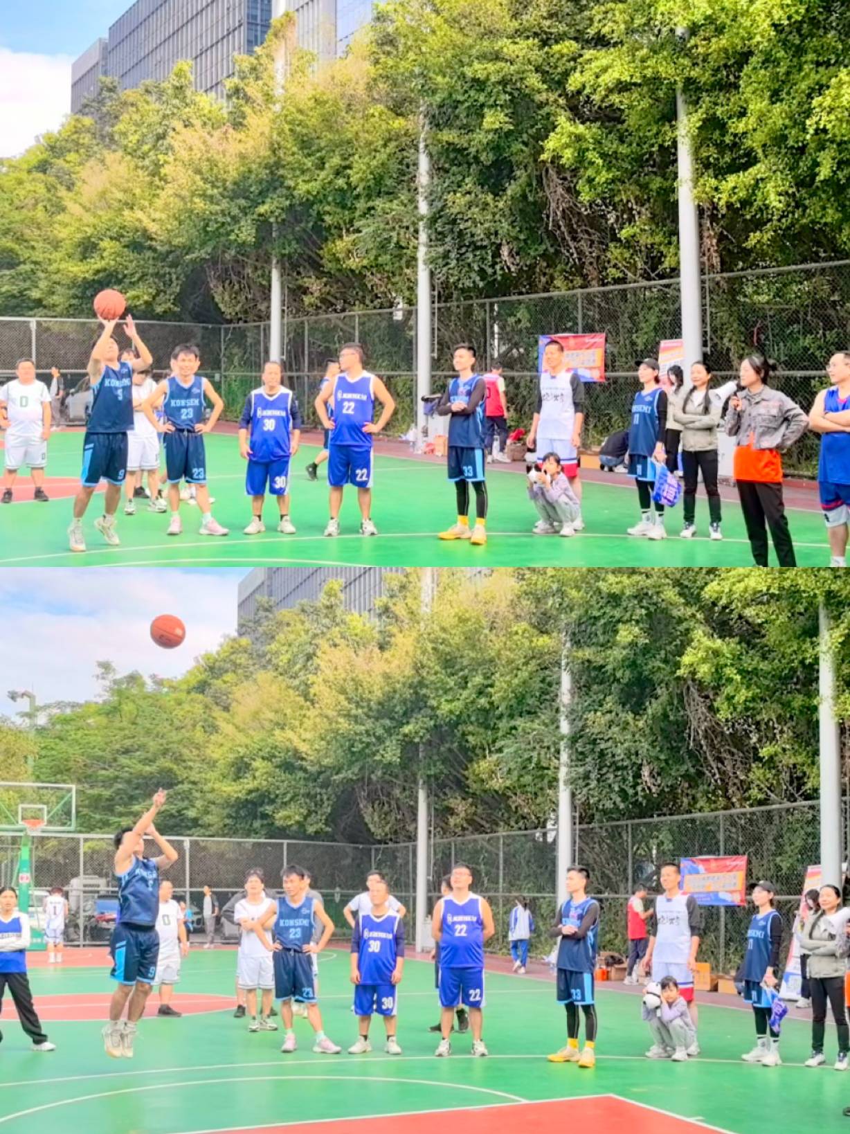 緊接著,是大家期待已久的男子三分球投籃,這一環(huán)節(jié)給“三分球王們”展示自我的機(jī)會,三分線處,手起球落,一道道優(yōu)美的弧線劃過天空。