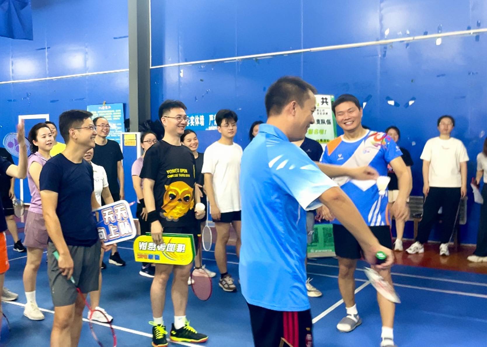 比賽正式開始,平時在工作中干勁十足的同事們,在球場上同樣的斗志昂揚。你來我往,你守我攻;小小的羽毛球在持續(xù)的擊打聲中,劃過一道道白色的弧線;一次次揮臂、跨步、登跳、吊球、扣殺,都充滿力量、熱血沸騰。加油聲此起彼伏,活動熱度持續(xù)升溫、現(xiàn)場氛圍更是愈發(fā)熱烈。