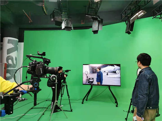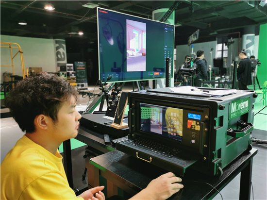 位于九洲5G數(shù)智產(chǎn)業(yè)生態(tài)基地里的沉浸式數(shù)字直播間(記者 李曉蓉攝)
